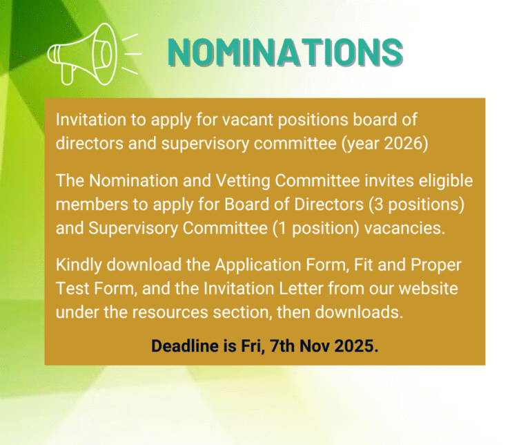 To mobilize savings, provide timely financial solutions that create value alongside improvement of members’ welfare through prudent management and use of modern technology.
